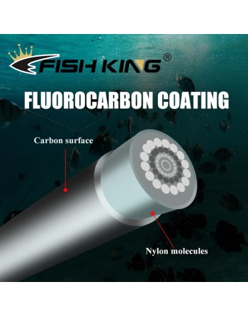 Πετονιά ψαρέματος από την Fish King μήκους 100 μέτρων. Είναι απόλυτα διάφανη στο νερό ενώ η επικάλυψη με υλικού fluorocarbon προσδίδει μεγάλη αντοχή και εξαιρετική απόδοση χωρίς να προκαλεί φθορές στο καλάμι.