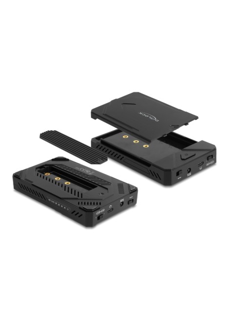Η θήκη της Delock δίνει την δυνατότητα της ταυτόχρονης λειτουργίας M.2 NVMe SSD και 2.5" SATA HDD ή SSD, μέσω θύρας USB-C ή USB με την χρήση αντάπτορα (συμπεριλαμβάνεται). Επιπλέον υποστηρίζει λειτουργία κλωνοποίησης μνήμης από NVMe σε SATA και από SATA σε NVMe χωρίς την χρήση υπολογιστή. Η εγκατάσταση του M.2 SSD γίνεται πολύ εύκολα χωρίς να απαιτούνται εργαλεία.