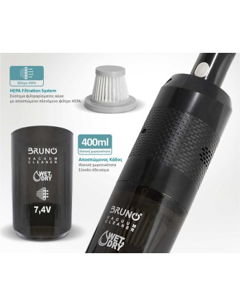 BRUNO σκουπάκι υγρών & στερεών BRN-0125, επαναφορτιζόμενο, φίλτρο HEPA