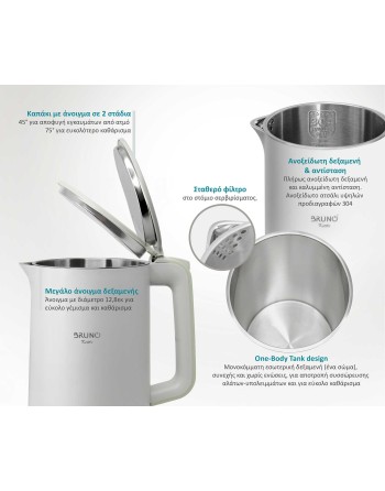 BRUNO βραστήρας BRN-0140 με διπλό τοίχωμα, 1.7L, strix, 2200W, λευκός