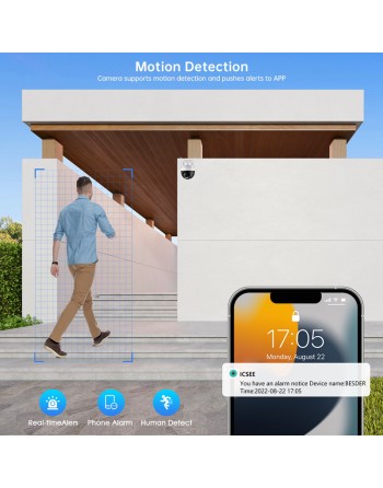 Ρυθμίζεται εύκολα και ελέγχεται από smartphone μέσω της δωρεάν εφαρμογής iCSee. Μπορεί να ανιχνεύσει κινήσεις, στέλνοντας ειδοποιήσεις στο smartphone σας κάθε φορά που ανιχνεύεται κίνηση και εξοπλίζεται με υψηλής ποιότητας μικρόφωνο που επιτρέπει την αμφίδρομη μεταφορά φωνής και ήχου.