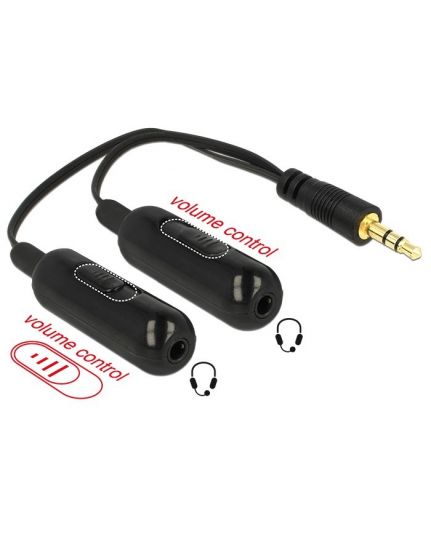 DELOCK Splitter από jack 3.5mm (M) σε 2x jack 3.5mm (F), Volume Control