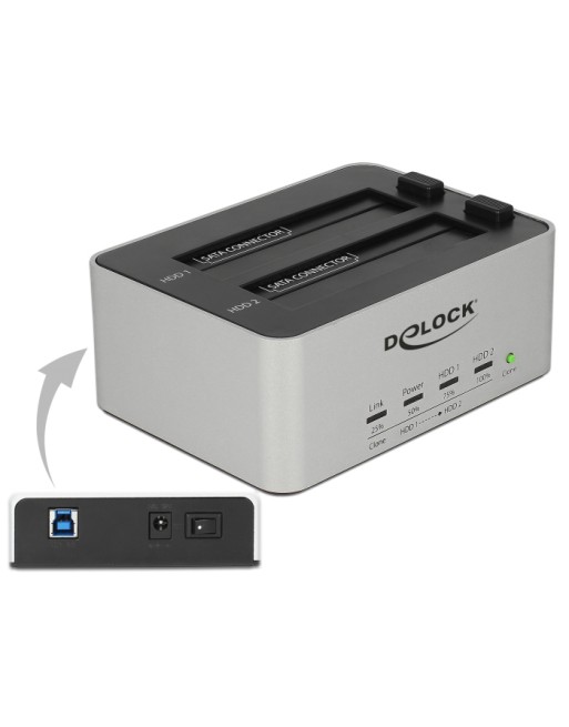 DELOCK docking station 63991, clone function, 2x 2.5/3.5" SSD/HDD, 5Gbps