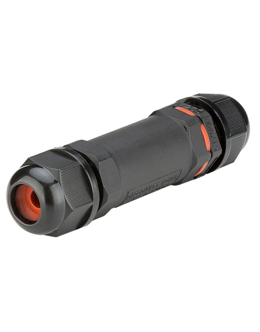 Αδιάβροχος σύνδεσμος καλωδίων τροφοδοσίας, ιδανικός για εφαρμογή σε εξωτερικούς χώρους. Προσφέρει αδιαβροχοποίηση επιπέδου IP68, προστατεύοντας την συνδεσμολογία από σκόνη και νερό. Εγκαθίσταται εύκολα και γρήγορα και είναι συμβατός με καλώδια διαμέτρου 6-12mm και με core cross-section 0.75-1.5mm².