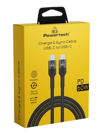 POWERTECH καλώδιο USB-C PTR-0131, PD 60W, copper, 60cm, μαύρο