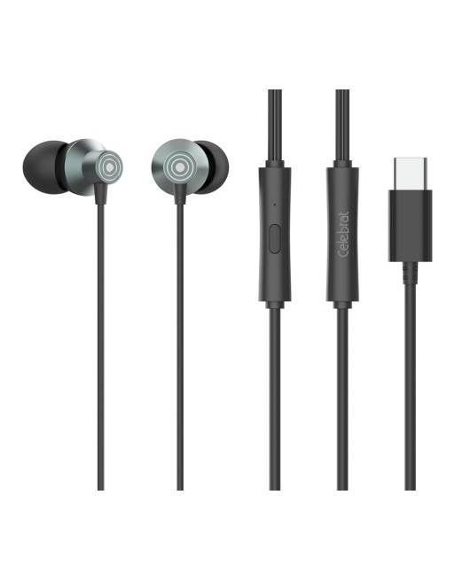 CELEBRAT earphones με μικρόφωνο D15, USB-C, 1.2m, μαύρα