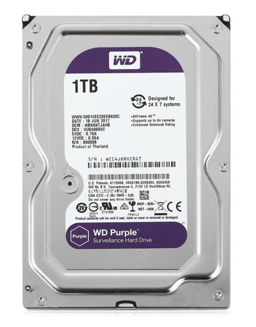 Οι μονάδες WD Purple έχουν σχεδιαστεί για να αντιμετωπίζουν τις προκλήσεις της εγγραφής βίντεο επιτήρησης σε 24ωρη βάση επί 7 ημέρες την εβδομάδα. Αυτές οι μονάδες είναι ειδικά σχεδιασμένες για επιτήρηση, προκειμένου να αντέχουν στις ακραίες διακυμάνσεις της θερμότητας και στις δονήσεις του εξοπλισμού εντός του περιβάλλοντος συστημάτων NVR. Ο μέσος επιτραπέζιος σκληρός δίσκος είναι σχεδιασμένος για να λειτουργεί αποκλειστικά ανά σύντομα χρονικά διαστήματα και όχι για το απαιτητικό περιβάλλον της αδιάκοπης λειτουργίας όλο το 24ωρο επί 7 ημέρες την εβδομάδα ενός συστήματος επιτήρησης υψηλής ευκρίνειας. Οι μονάδες WD Purple σας παρέχουν αξιόπιστη αποθήκευση ενισχυμένη με λειτουργία επιτήρησης, η οποία έχει δοκιμαστεί ως προς τη συμβατότητά της σε ένα ευρύ φάσμα συστημάτων ασφαλείας. Η αποκλειστική τεχνολογία AllFrame™ μειώνει την απώλεια καρέ και βελτιώνει τη συνολική αναπαραγωγή βίντεο.