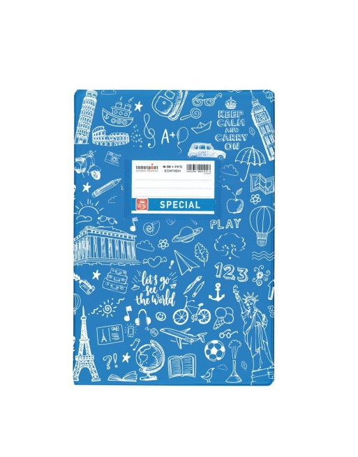 Doodle εξήγηση εύκαμπτη με περαστή θήκη. Special Τετράδιο 50 φύλλων, διάστασης B5 (17x25). Το εξώφυλλο είναι χρωματιστό με σχέδια για να ξεχωρίζει το κάθε μάθημα εύκολα. Τα φύλλα είναι από εξαιρετικής ποιότητας χαρτί 70γρ. και η γραμμογράφηση είναι ριγέ με σωστές αποστάσεις. Έχει προεκτυπωμένη ετικέτα 2 όψεων σε ματ χαρτί η οποία βγαίνει εύκολα χάρη στην εγκοπή και στρογγυλεμένες γωνίες.
