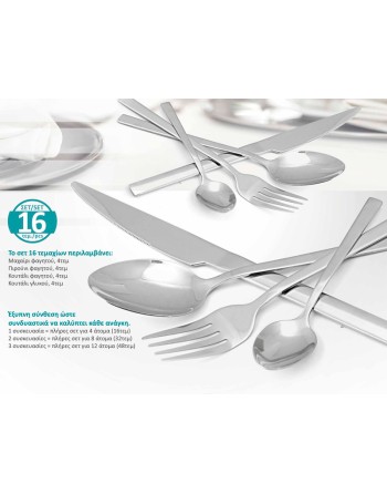 Σετ μαχαιροπίρουνα 16 τεμαχίων Dioni από την Bruno, υψηλής ποιότητας και αισθητικής, κατασκευασμένα από άριστης ποιότητας ανοξείδωτο ατσάλι σε μοντέρνο σχέδιο και άψογο φινίρισμα "καθρέφτη".