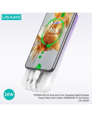 USAMS power bank US-CD193 με καλώδια, 5x έξοδοι, 10000mAh, 20W, μαύρο