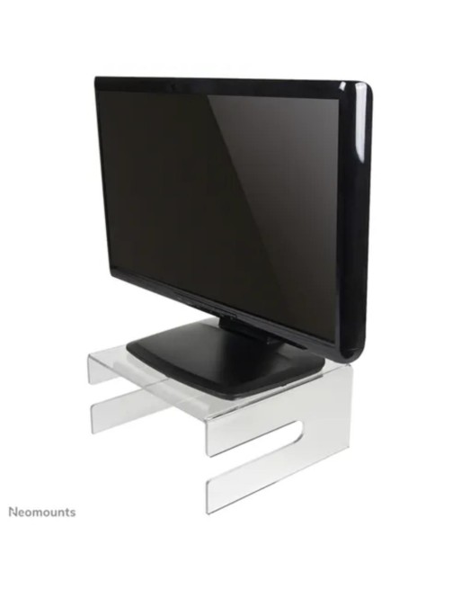 The Neomounts acrylic monitor riser, model NSMONITOR50 is a monitor riser for screens up to 25 kilo. It fits CRT and flat screens. Stunning looks due to crystal clear acrylic material. The surface is polished for optimum appearance. The keyboard fits in the special slots to keep the workplace clean. Change the height of your screen with 13,4 cm. Width 29 cm, depth 29 cm and height 13,4 cm. By using an ergonomic mount neck- and back complaints can be avoided. Ideal for use in offices and on counters or in a reception area.