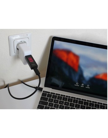 The LED indicator of the adapter shows the current ampere and volt values of the connected device.