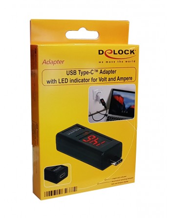 DELOCK Adapter Type-C male σε female, LED indicator για Voltage & Ampere
