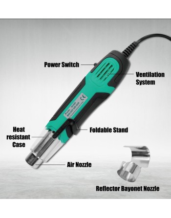 Μίνι πιστόλι θερμού αέρα της PROSKIT κατάλληλο για εφαρμογές όπως η συρρίκνωση θερμοσυστελλόμενων, η αφαίρεση χρωμάτων και η αποκόλληση εξαρτημάτων κ.α.