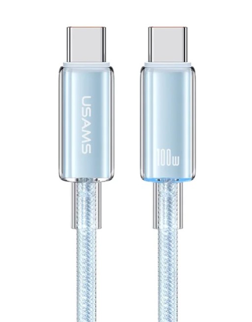 Καλώδιο φόρτισης και μεταφοράς δεδομένων USB-C σε USB-C της Usams. Υποστηρίζει φόρτιση με απόδοση έως 100W και μεταφορά δεδομένων με ταχύτητα έως 480Mbps.