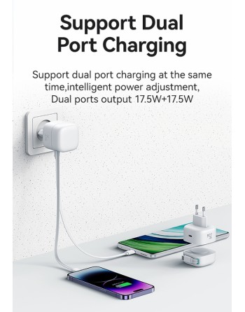 Διαθέτει 1x USB-C θύρα εξόδου και ενσωματωμένο πτυσσόμενο καλώδιο USB-C που υποστηρίζουν φόρτιση με μέγιστη απόδοση 35W.