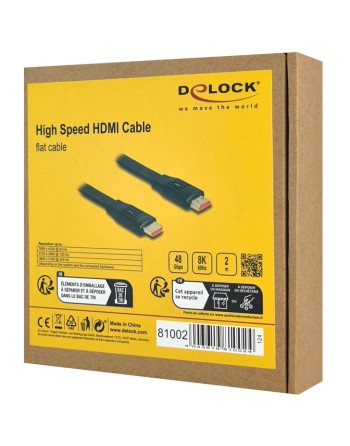 DELOCK καλώδιο HDMI 81002, flat, 8K/60Hz, 48 Gbps, eARC, HDR, 2m, μαύρο