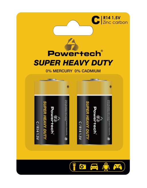 POWERTECH μπαταρίες Zinc Carbon Super Heavy Duty PT-1221, R14 1.5V, 2τμχ