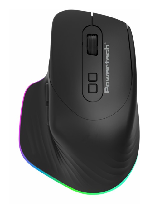 POWERTECH ασύρματο gaming ποντίκι PT-1253, 2.4GHz & Bluetooth, 2000DPI, 650mAh, RGB, μαύρο
