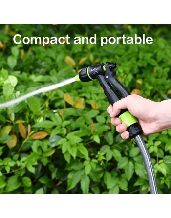 Πιστόλι εκτόξευσης νερού της Deli με 3 λειτουργίες ψεκασμού. Διαθέτει αντιολισθητική λαβή που εφαρμόζει καλά στο χέρι για πιο ξεκούραστο πότισμα.
