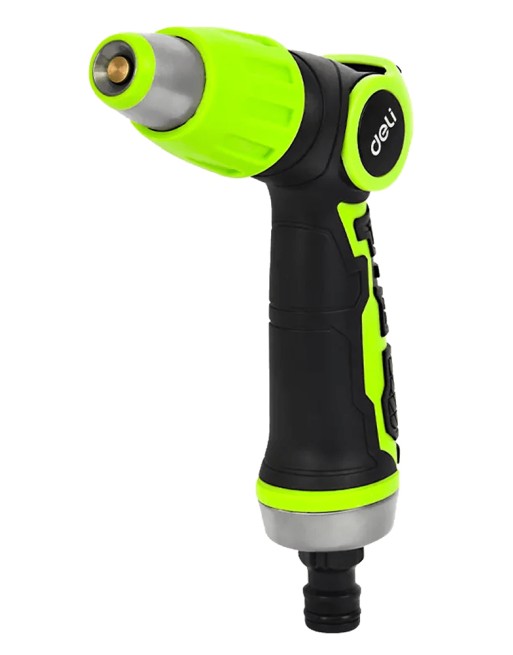 Πιστόλι εκτόξευσης νερού της Deli με 3 λειτουργίες ψεκασμού. Διαθέτει αντιολισθητική λαβή που εφαρμόζει καλά στο χέρι για πιο ξεκούραστο πότισμα.