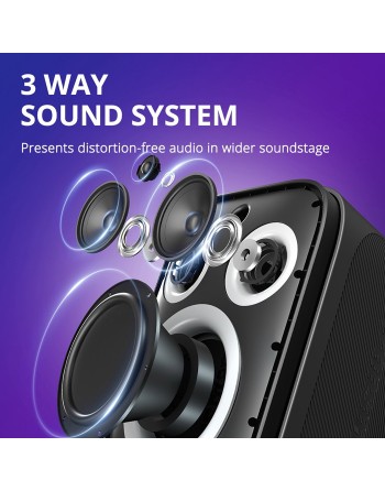 Ασύρματο φορητό ηχείο της Tronsmart για να σας συντροφεύει παντού, με εξαιρετική ποιότητα ήχου. Εξοπλίζεται με ενσωματωμένη, επαναφορτιζόμενη μπαταρία χωρητικότητας 15000mAh, που προσφέρει έως 18 ώρες αναπαραγωγής μουσικής.