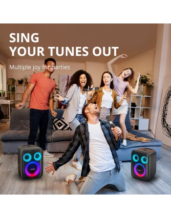 Συνοδεύεται από 2x ασύρματα μικρόφωνα για να μετατρέψετε τις συναντήσεις με τους φίλους σας, σε ένα διασκεδαστικό karaoke party.