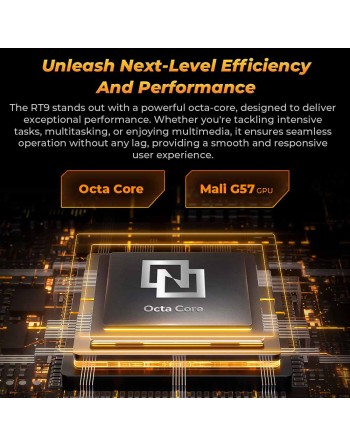 Εξοπλισμένο με επεξεργαστή 8 πυρήνων και λειτουργικό Android 14, το RT9 προσφέρει υψηλή απόδοση για απρόσκοπτη περιήγηση στο διαδίκτυο, παιχνίδια, πολυμέσα και πολλά άλλα.
