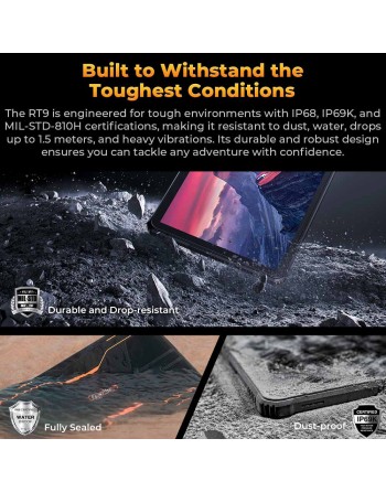 Με πιστοποίηση IP68/IP69K/MIL-STD-810H, το tablet RT9 είναι σχεδιασμένο για να αντέχει σε ακραίες συνθήκες χρήσης και περιβάλλοντα.