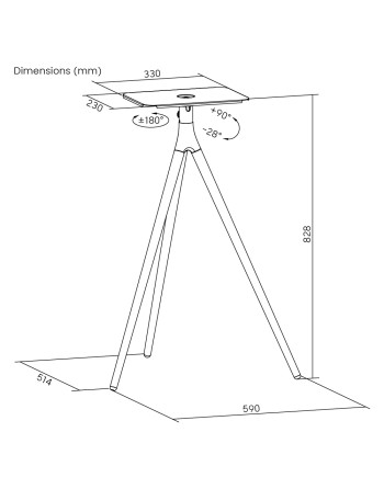 -swivel range: +28° ~ -28°