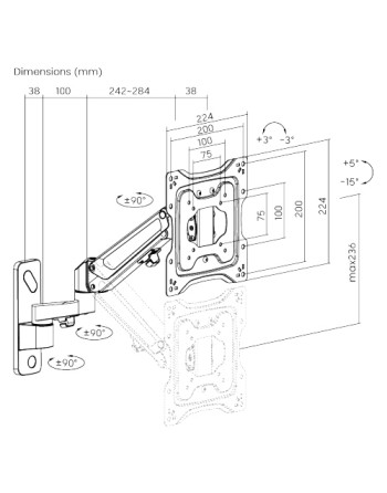 BRATECK επιτοίχια βάση LDA33-222 για τηλεόραση 23-43" έως 23kg, full motion