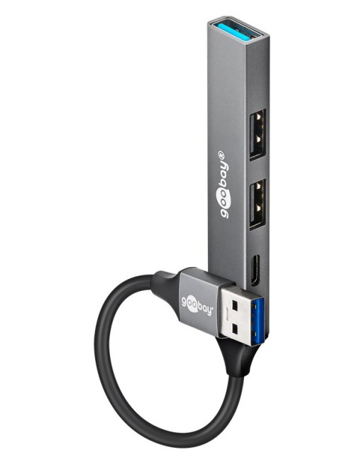 Αυτό το hub της Goobay μπορεί να συνδεθεί με το laptop ή το desktop σας μέσω θύρας USB και να επεκτείνει τις θύρες του με 1x USB-C και 3x USB θύρες. Διαφορετικές συσκευές USB, όπως εξωτερικοί σκληροί δίσκοι, card readers, ποντίκια κλπ. μπορούν να συνδεθούν μέσω του hub.