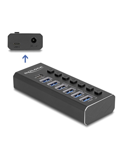 DELOCK USB hub 64326 με διακόπτες, 7x θυρών, 10Gbps, USB/USB-C σύνδεση, μαύρο