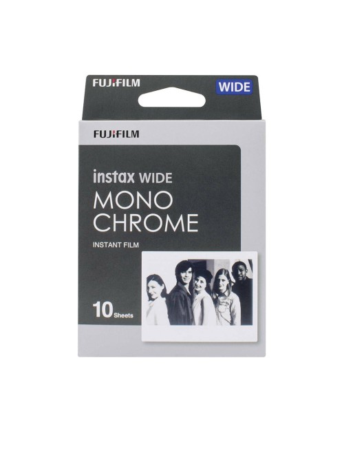 Αυτό το πακέτο Fujifilm Instax Wide Monochrome περιλαμβάνει 10 φύλλα στιγμιαίου ασπρόμαυρου φιλμ, συμβατό με κάμερες της σειράς Fujifilm Instax Wide.