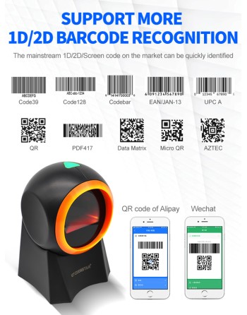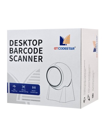 Επιτραπέζιο barcode scanner της GTCODESTAR για γρήγορη και ακριβή ανάγνωση 1D και 2D barcodes. Η σύνδεση του γίνεται ενσύρματα μέσω καλωδίου USB (συμπεριλαμβάνεται).