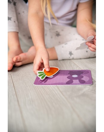 Σε αυτό το παιχνίδι, το παιδί πρέπει να βρει τι τρώει το επιλεγμένο ζώο και να συνδέσει την πλαστική φιγούρα στη σιλουέτα υπόδειξης στην κάρτα. Το παιδί πρέπει να βρει κατάλληλη τροφή για το ζώο.