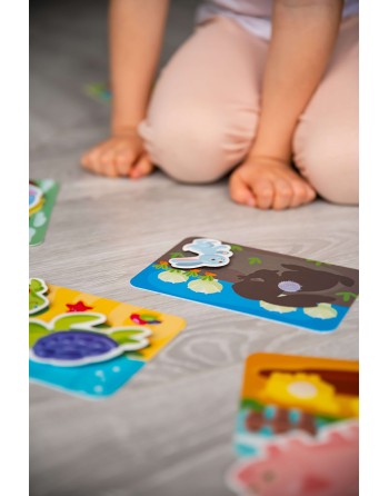 Το κιτ περιλαμβάνει κάρτες και αντικείμενα που συνδέονται στις κάρτες με Velcro. Το καθήκον είναι να βρείτε ένα ζευγάρι "Μητέρα και Μωρό" και να συνδέσετε σωστά τους χαρακτήρες στις αντίστοιχες κάρτες.