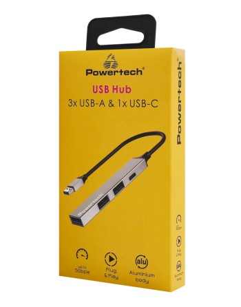 Το USB hub της Powertech επεκτείνει τις θύρες του desktop ή laptop σας με 1x USB-C και 3x USB θύρες.