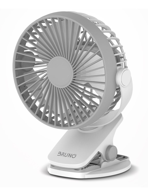 BRUNO BRN-0230 Ανεμιστήρας με κλίπ επαναφορτιζόμενος, λευκός-γκρί