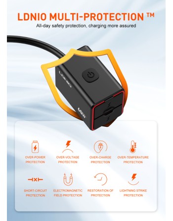 LDNIO φορτιστής μοτοσυκλέτας C108 με καλώδιο, USB/USB-C, 60W, μαύρος