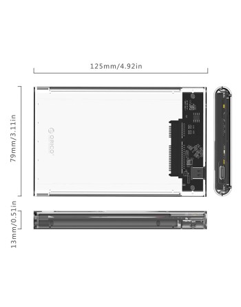 ORICO θήκη για 2.5" SATA HDD/SSD 2139C3, 5Gbps, διάφανη