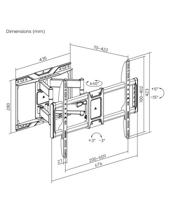 -συμβατότητα VESA: 200x100, 200x200, 200x300, 300x200, 200x400, 400x200, 300x300, 300x400, 400x300, 600x200, 500x300, 400x400, 600x300, 500x400, 600x400