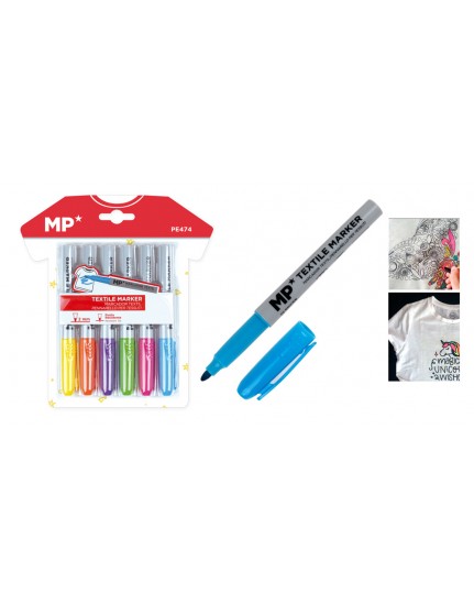 MP σετ μαρκαδόρων για ρούχα PE474, 2mm, 6 χρώματα