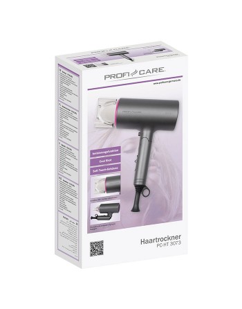 Σεσουάρ μαλλιών 1600W, με αναδιπλούμενη λαβή, σε γκρι/ροζ χρώμα.