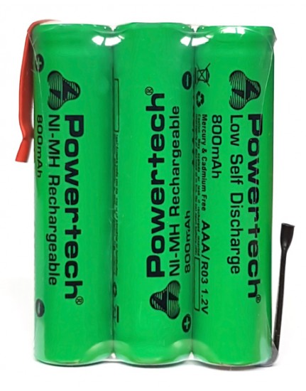 Σετ επαναφορτιζόμενων μπαταριών τύπου Ni-Mh AAA (HR03), έτοιμες για χρήση σε συσκευές που απαιτούν 3 ενωμένες μπαταρίες.