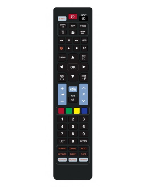 Εργονομικό χειριστήριο τηλεόρασης το οποίο υποστηρίζει όλες τις λειτουργίες της τηλεόρασης, συμπεριλαμβανομένου και του teletext. Επιπρόσθετα, εξοπλίζεται με dedicated πλήκτρα για εφαρμογές των smart TVs.
