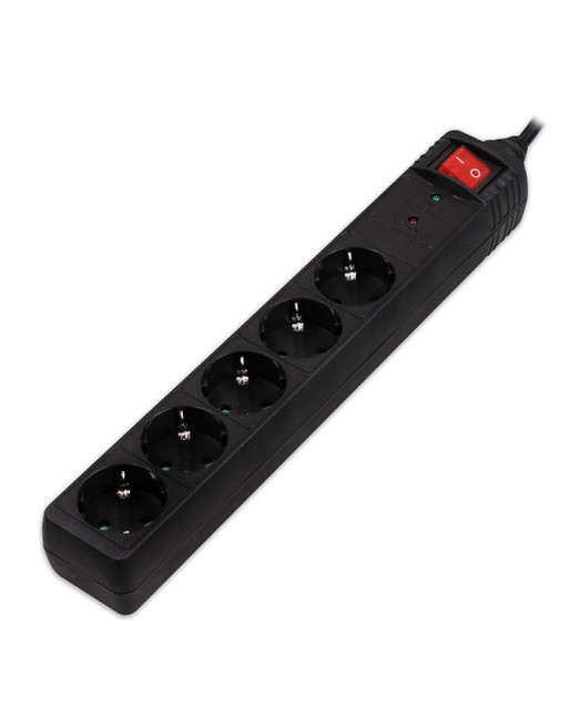Πολύπριζο 5 θέσεων με προστασία υπέρτασης, διακόπτη ON/OFF και καλώδιο 1.5m σε μαύρο χρώμα.