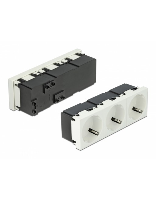 Τριπλή πρίζα ρεύματος της σειράς Easy 45 της Delock για παροχή ρεύματος CEE 7/3, με γωνία 45°.
