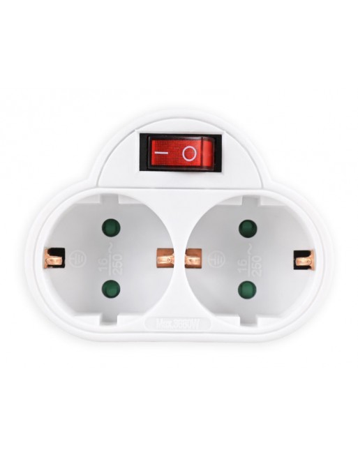 Αντάπτορας ρεύματος Powertech 2 θέσεων schuko, με διακόπτη On/Off και μηχανισμό ασφαλείας για παιδιά.