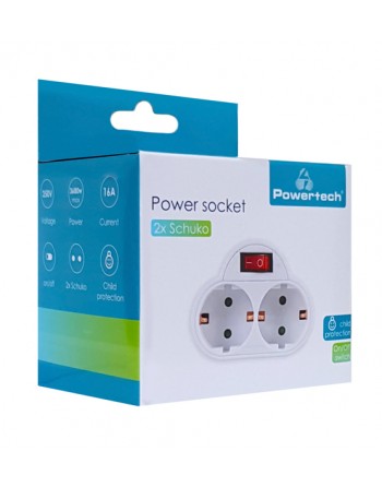 POWERTECH αντάπτορας ρεύματος PT-814, 2x schuko, 250V 16A, λευκός